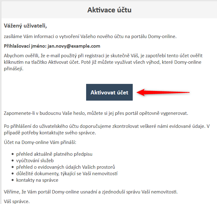 Aktivační e-mail zpravidla vypadá takto: