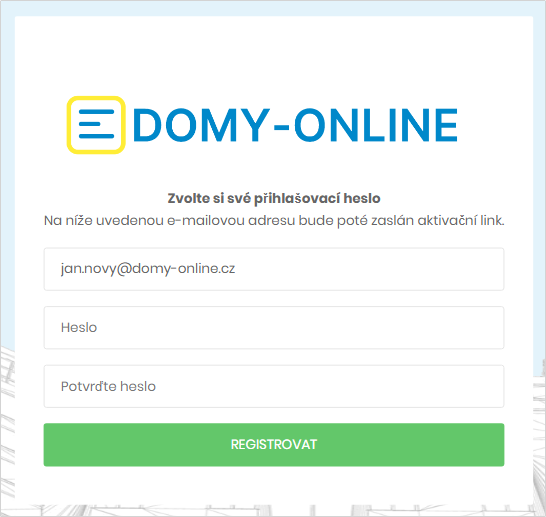 Registrace uživatele na Domy-online